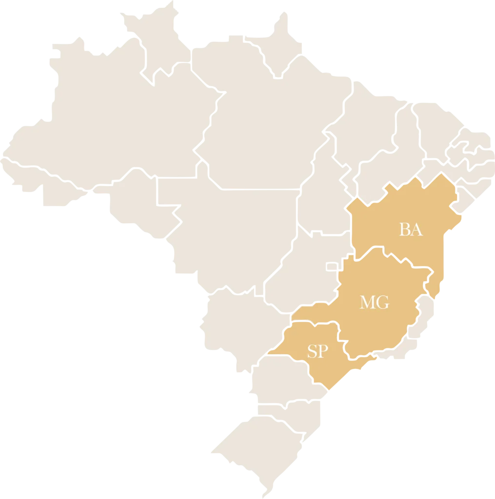 Nossas 5 unidades produtivas estão localizadas em regiões estratégicas do país, permitindo operar com eficiência logística, planejamento agrícola e produção em larga escala. Essa presença regional fortalece nossa capacidade produtiva e garante maior competitividade no agronegócio.